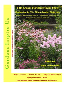 “A Gardener’s Library” – The Tri-cities Garden Club’s 66th Annual Flower Show will be July 17, 18, 19 at the Spring Lake District Library in Spring Lake, MI.