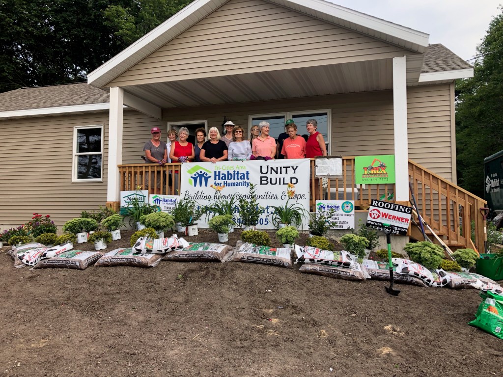On Tuesday 15 members of TriCities Garden Club landscaped the Habitat for Humanity house in Grand Haven. I would like to thank everyone who helped with their labor, we were done in two hours! I would also like to thank all of the local green industry businesses who stepped up and provided much needed supplies: